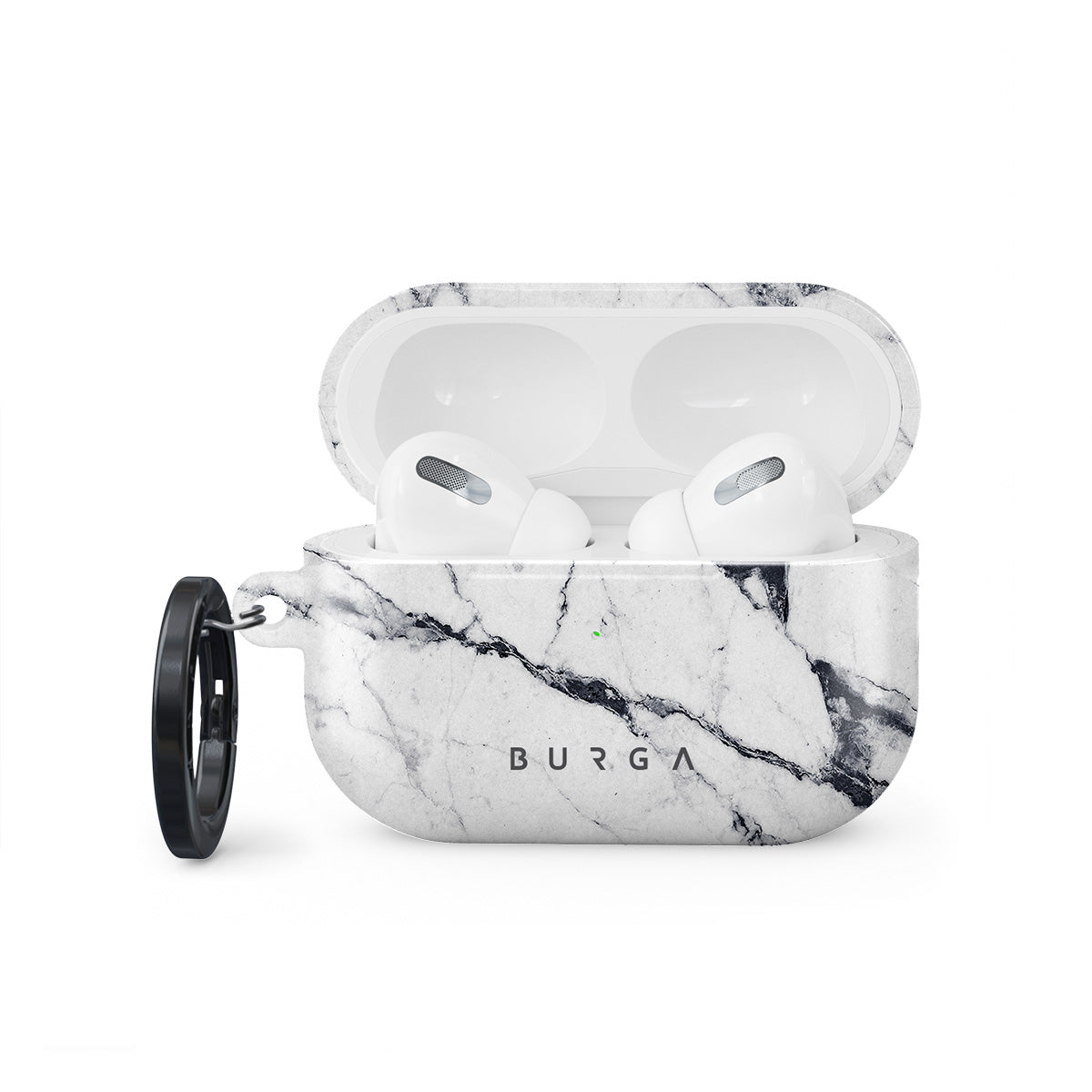 Add a timeless white marble pattern to your accessory collection with our Satin White Apple Airpods Pro 2 case cover. Keep your Airpods Pro 2 safe and sound in the snug-fitting case cover that will protect them while also adding a touch of timeless classic to your wardrobe. Our case fits perfectly snug around Apple Airpods Pro 2 . “Like a glove!” one might say. And it won’t disrupt the wireless charging capabilities of the newer model. There’s even an LED light indicator to prove it (don’t worry, wired charging still works, too). When fitted, the BURGA case will protect the delicate Apple Airpods Pro 2 case beneath it from scratches, bumps, and drops while remaining scratch-free itself. Our signature design pattern prints are High Quality, and will never peel or fade away- thanks to our unique printing technology. And finally, a handy carabiner is there to make your life easier and more convenient: just snap it around your keys or belt loop and tackle the day head-on. Your music is right there by your side when you need it.