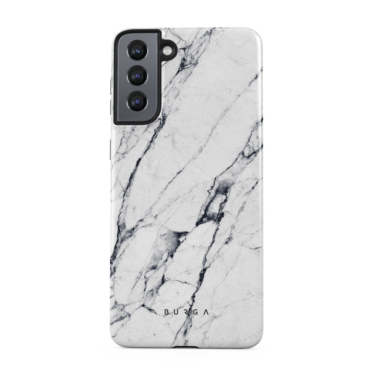 Our beautiful Satin White Samsung Galaxy S21 phone case cover is a genuine white marble dream. The actual depiction of the worldwide fashion trend. Allow this case to add style to your phone while also taking care of the much-needed protection.