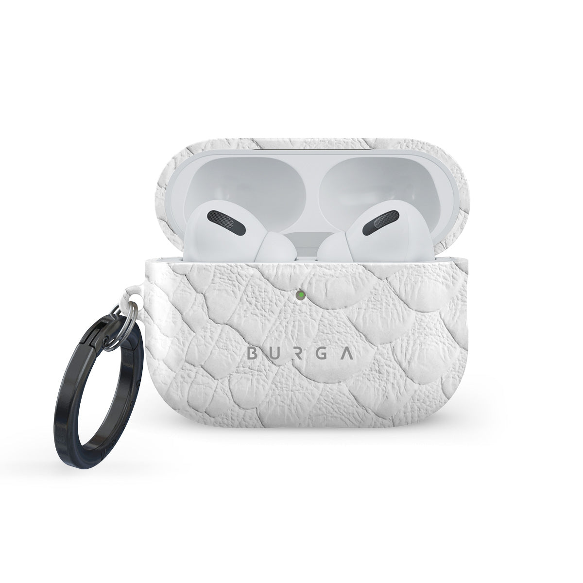 The dangerous animal print of our Apple AirPods Pro 3 case cover featuring a white snakeskin pattern will surely add a touch of luxury to your style while transforming a protective cover into a fashion accessory. Our case fits perfectly snug around Apple AirPods Pro 3 . “Like a glove!” one might say. And it won’t disrupt the wireless charging capabilities of the newer model. There’s even an LED light indicator to prove it (don’t worry, wired charging still works, too). When fitted, the BURGA case will protect the delicate Apple AirPods Pro 3 case beneath it from scratches, bumps, and drops while remaining scratch-free itself. Our signature design pattern prints are High Quality, and will never peel or fade away- thanks to our unique printing technology. And finally, a handy carabiner is there to make your life easier and more convenient: just snap it around your keys or belt loop and tackle the day head-on. Your music is right there by your side when you need it.