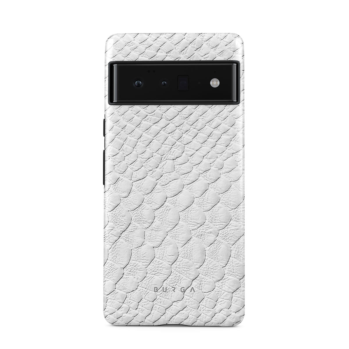 Glacial Desert Google Pixel 6 Pro phone case features snakeskin design in glacial white color. The dangerous animal print will add confidence and a touch of luxury to your style while transforming your phone into a fashion accessory.