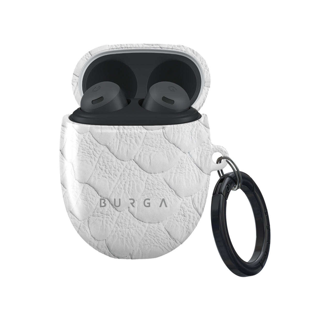 The dangerous animal print of our Google Pixel Buds Pro case cover featuring a white snakeskin pattern will surely add a touch of luxury to your style while transforming a protective cover into a fashion accessory. Our case fits perfectly snug around Google Pixel Buds Pro . “Like a glove!” one might say. And it won’t disrupt the wireless charging capabilities of the newer model. There’s even an LED light indicator to prove it (don’t worry, wired charging still works, too). When fitted, the BURGA case will protect the delicate Google Pixel Buds Pro case beneath it from scratches, bumps, and drops while remaining scratch-free itself. Our signature design pattern prints are High Quality, and will never peel or fade away- thanks to our unique printing technology. And finally, a handy carabiner is there to make your life easier and more convenient: just snap it around your keys or belt loop and tackle the day head-on. Your music is right there by your side when you need it.