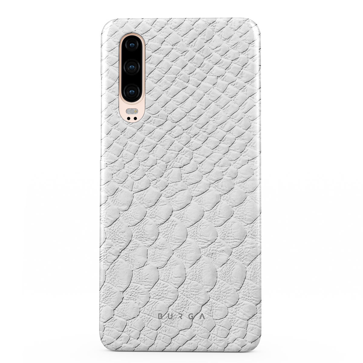Glacial Desert Huawei P30 phone case features snakeskin design in glacial white color. The dangerous animal print will add confidence and a touch of luxury to your style while transforming your phone into a fashion accessory.