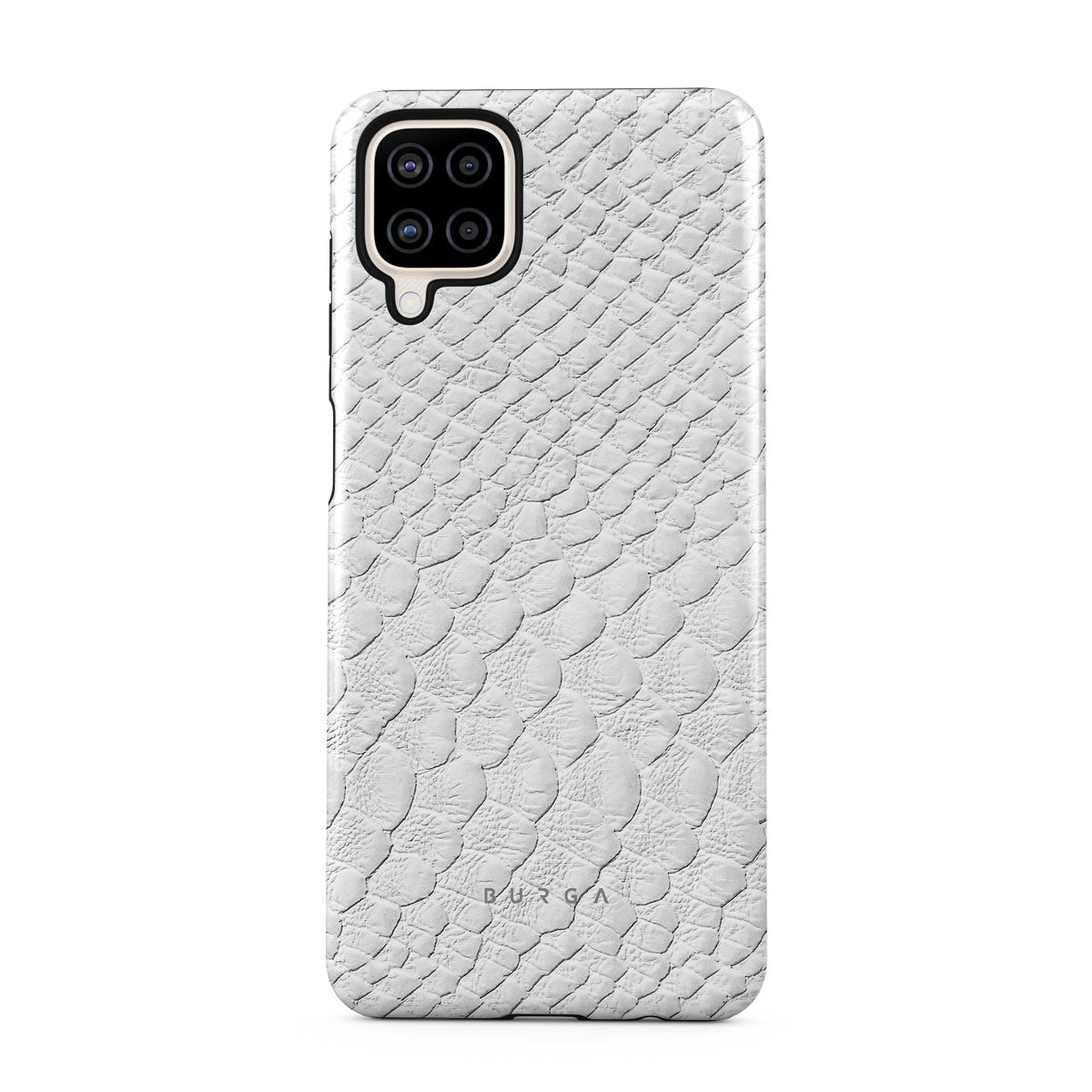 Glacial Desert Samsung Galaxy A12 4G phone case features snakeskin design in glacial white color. The dangerous animal print will add confidence and a touch of luxury to your style while transforming your phone into a fashion accessory.