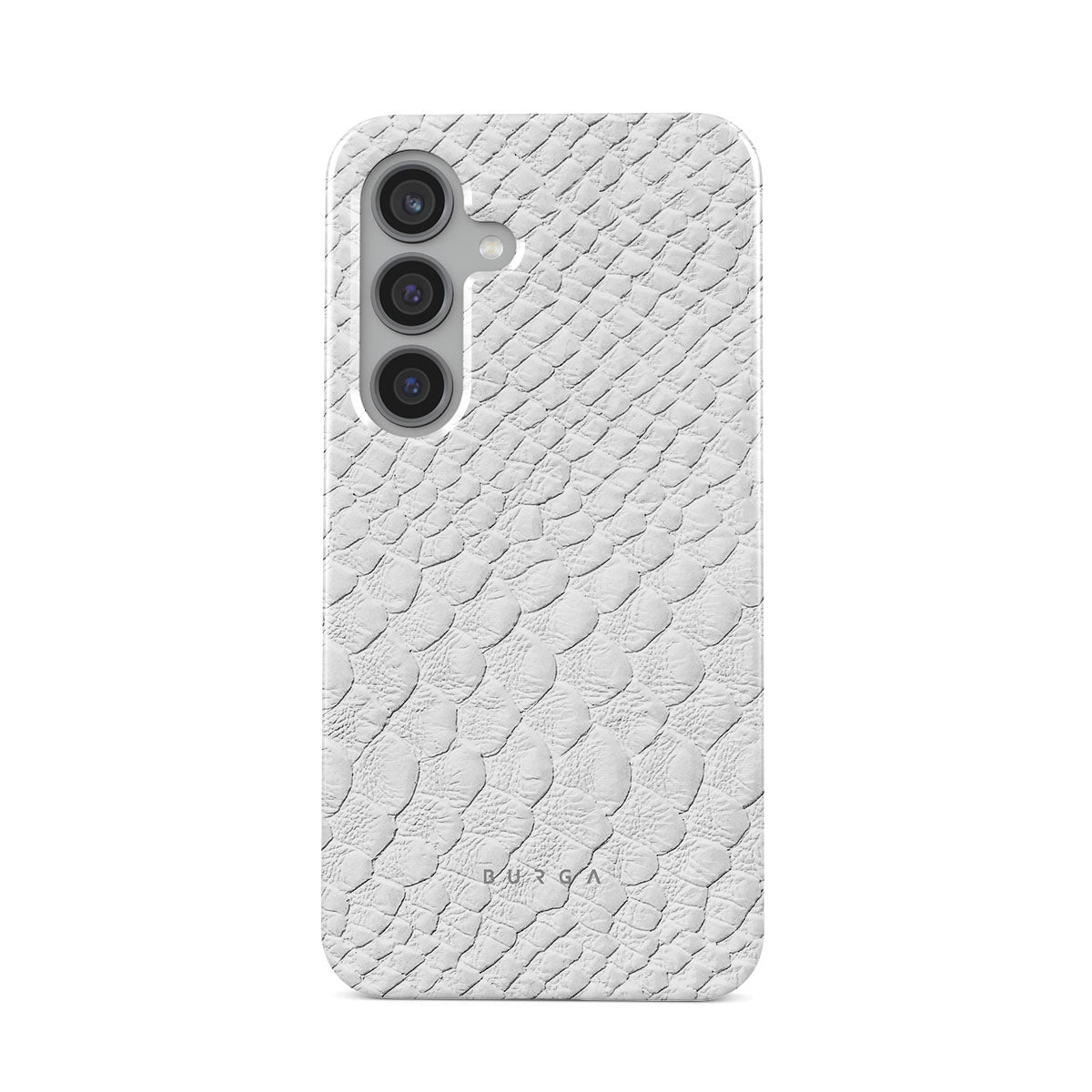 Glacial Desert Samsung Galaxy S24 Plus phone case features snakeskin design in glacial white color. The dangerous animal print will add confidence and a touch of luxury to your style while transforming your phone into a fashion accessory.