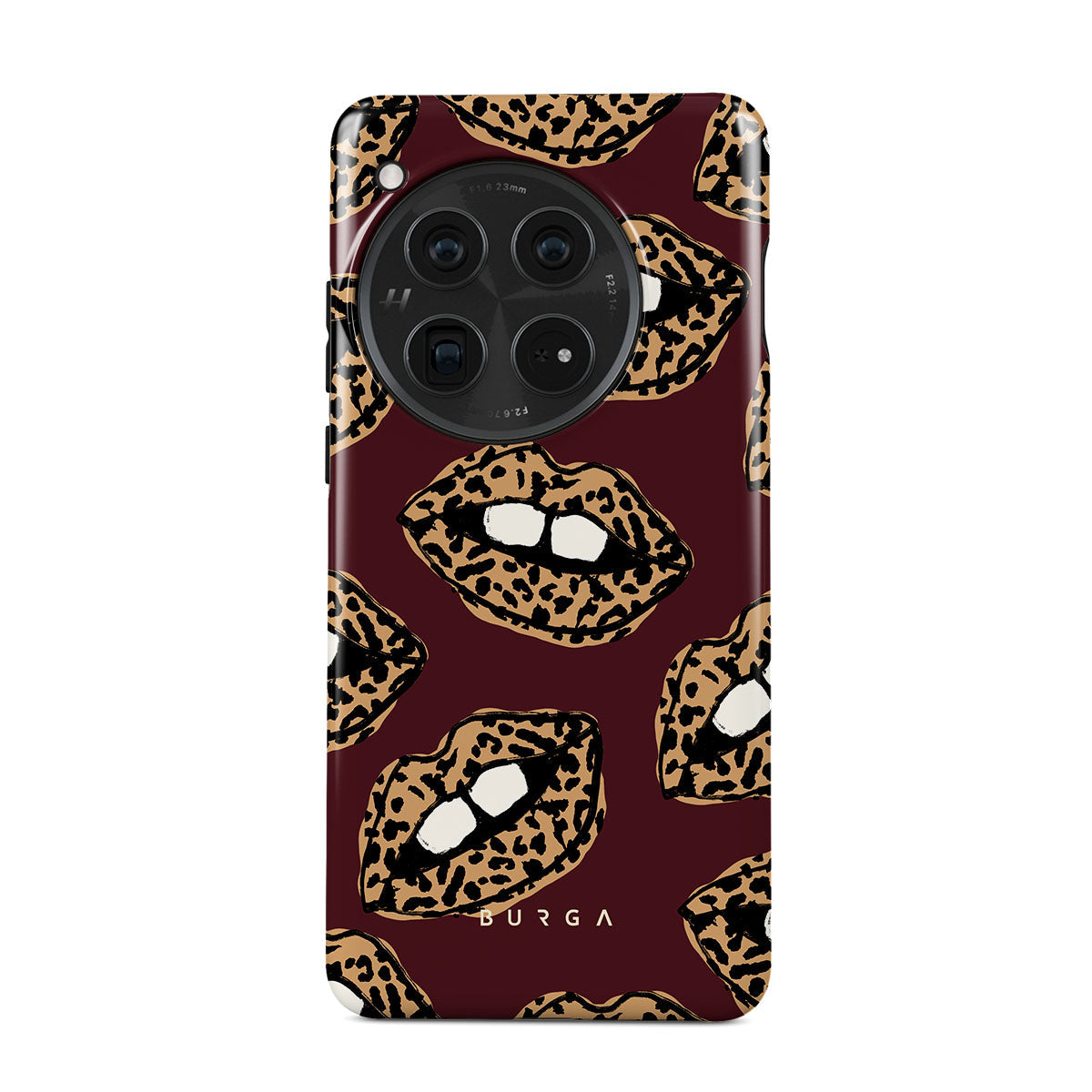This design features: leopard print, lips, open lips, colored lips