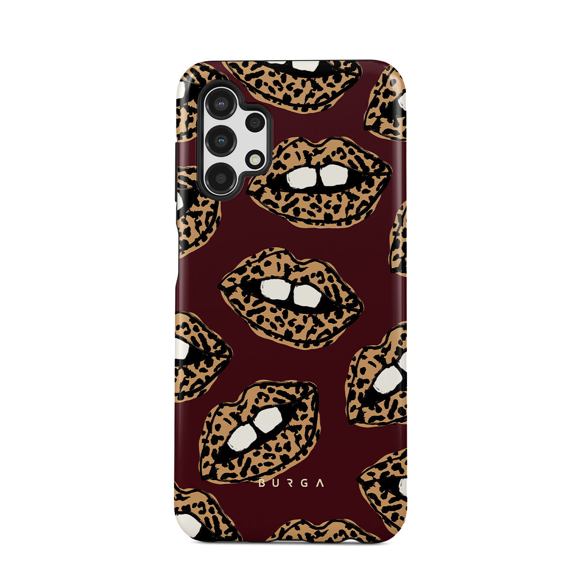 This design features: leopard print, lips, open lips, colored lips