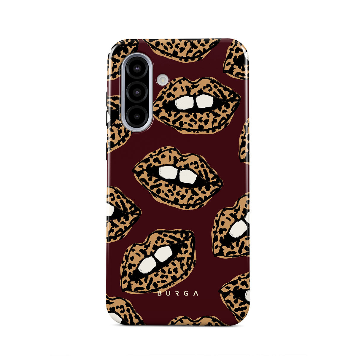 This design features: leopard print, lips, open lips, colored lips