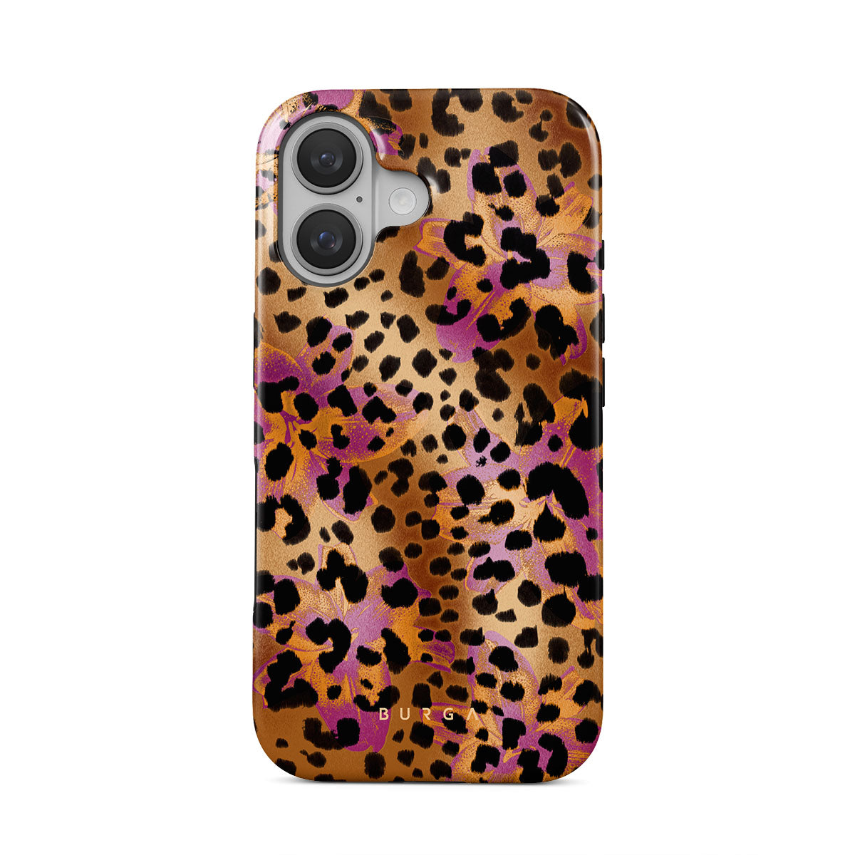 Leopard print dipped in purple mood swings. This iPhone 16 Plus phone case design is the queen of chaos.