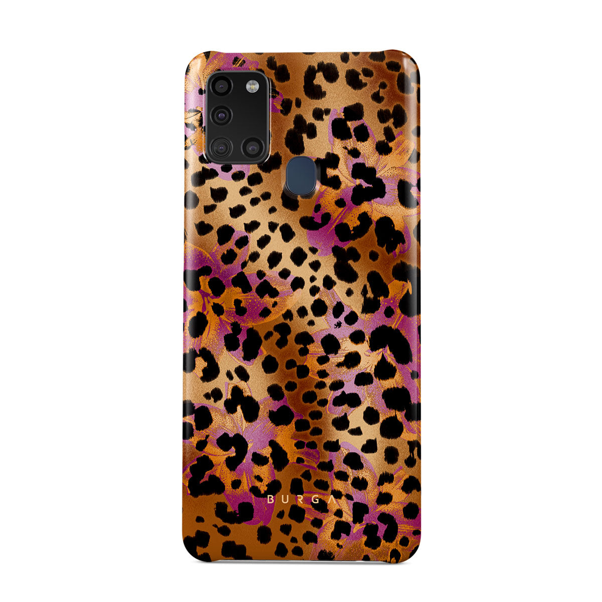 Leopard print dipped in purple mood swings. This Samsung Galaxy A21s 4G phone case design is the queen of chaos.