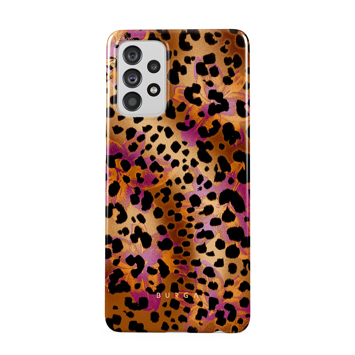 Leopard print dipped in purple mood swings. This Samsung Galaxy A72 4G / 5G phone case design is the queen of chaos.