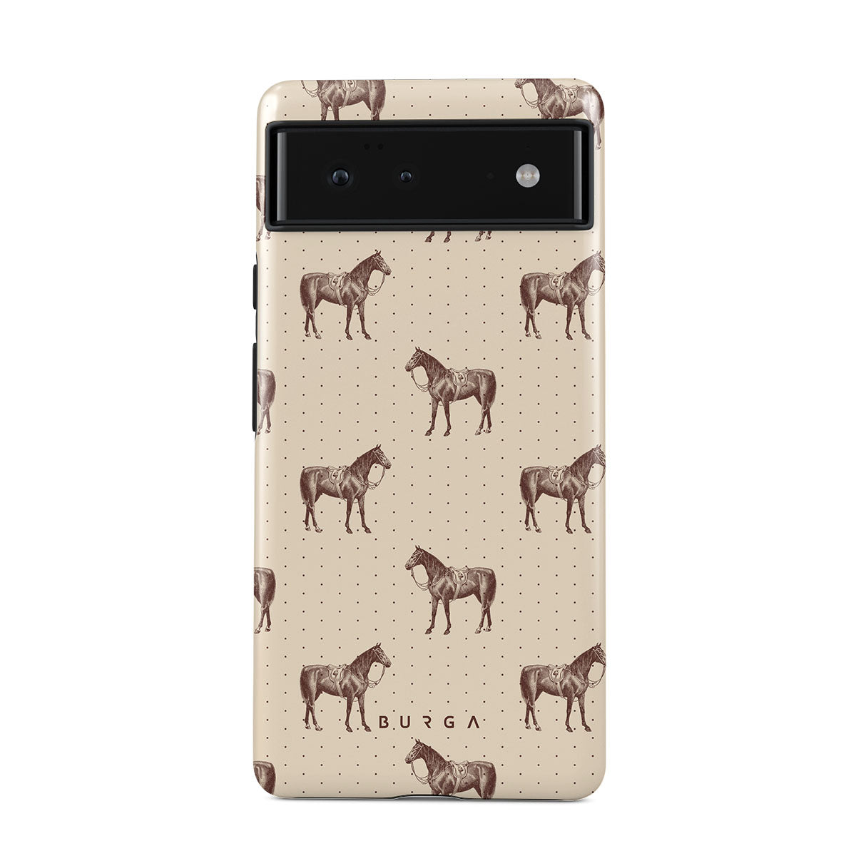 Life might feel like the Wild West sometimes, but your look can still be on point. With beautiful horses on a classic nude background, this Google Pixel 6 phone case design is the one for those who ride free and stylish.