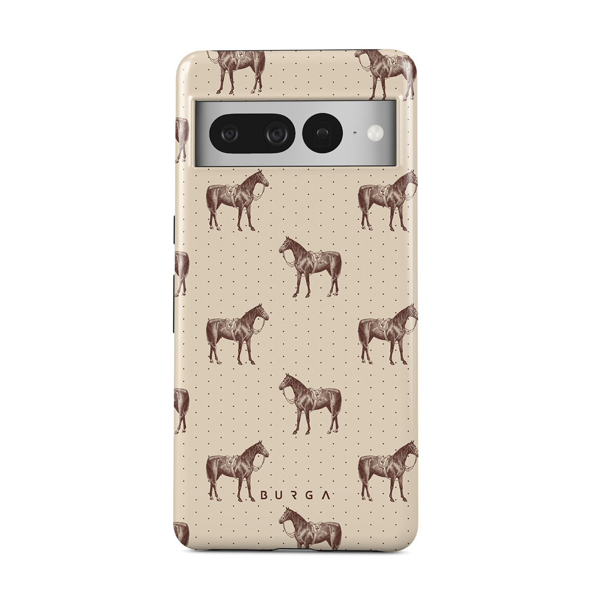 Life might feel like the Wild West sometimes, but your look can still be on point. With beautiful horses on a classic nude background, this Google Pixel 7 Pro phone case design is the one for those who ride free and stylish.