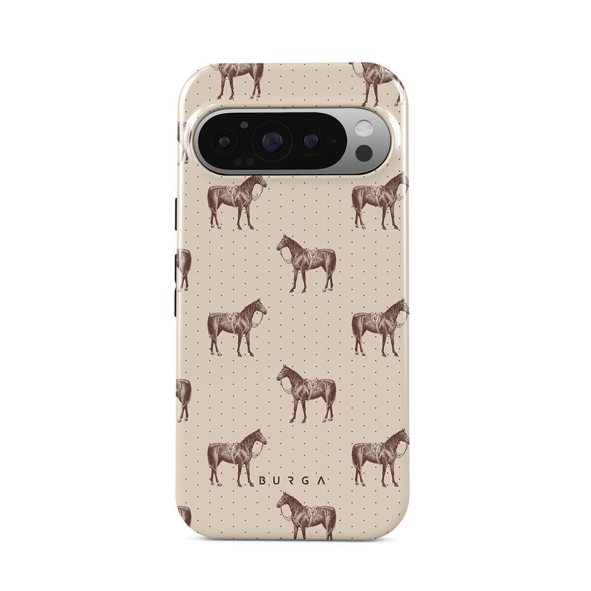 Life might feel like the Wild West sometimes, but your look can still be on point. With beautiful horses on a classic nude background, this Google Pixel 9 Pro phone case design is the one for those who ride free and stylish.