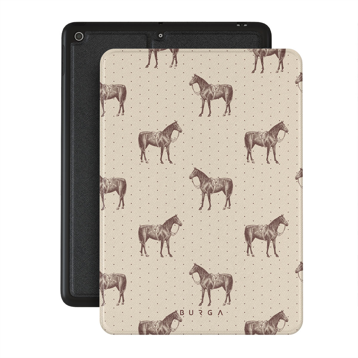 Life might feel like the Wild West sometimes, but your look can still be on point. With beautiful horses on a classic nude background, this iPad 10.2 (9th/8th/7th Gen) folio case design is the one for those who ride free and stylish.