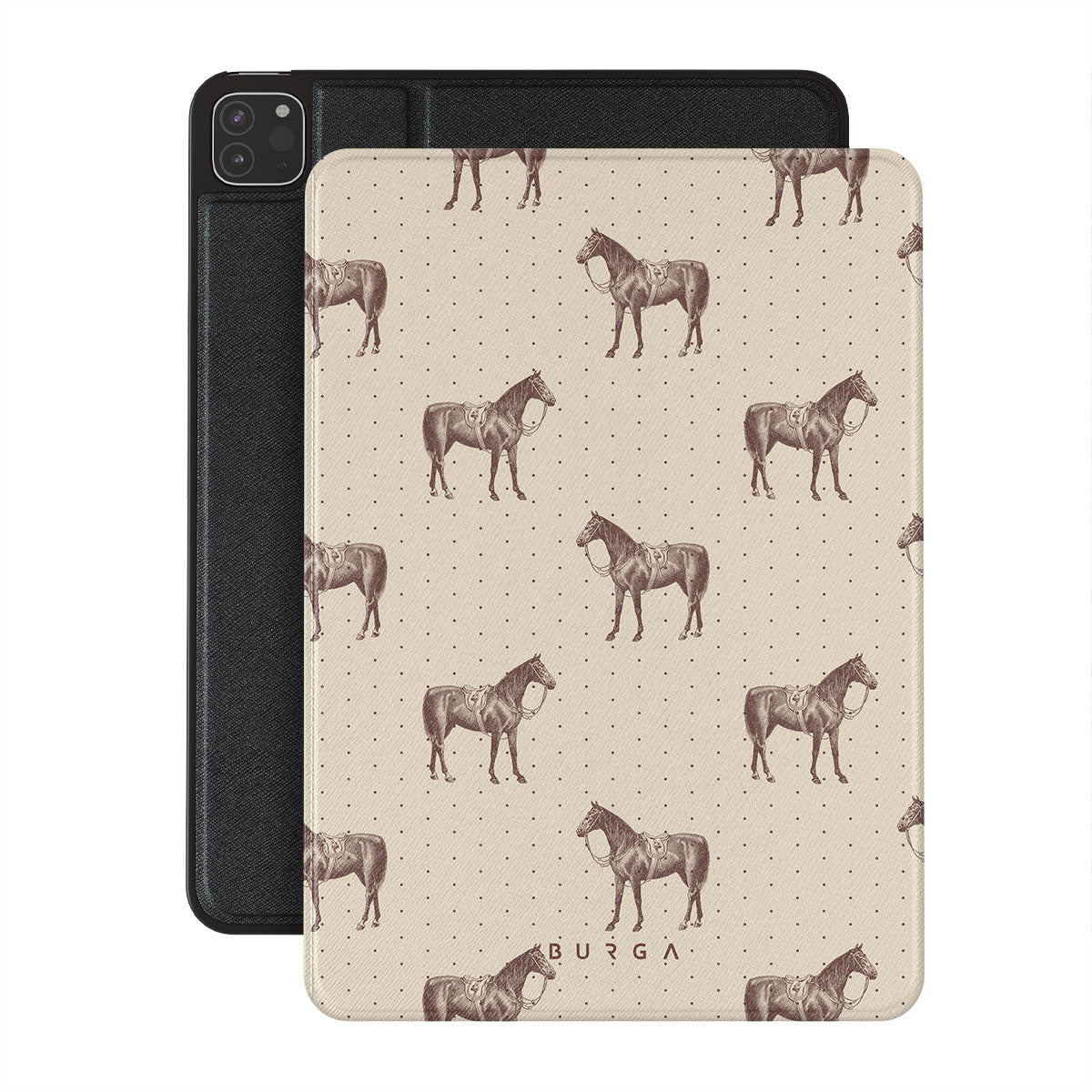 Life might feel like the Wild West sometimes, but your look can still be on point. With beautiful horses on a classic nude background, this iPad Pro 12.9 (4th/3rd Gen) folio case design is the one for those who ride free and stylish.