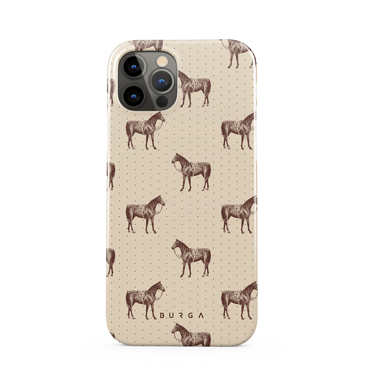 Life might feel like the Wild West sometimes, but your look can still be on point. With beautiful horses on a classic nude background, this iPhone 12 Pro Max phone case design is the one for those who ride free and stylish.