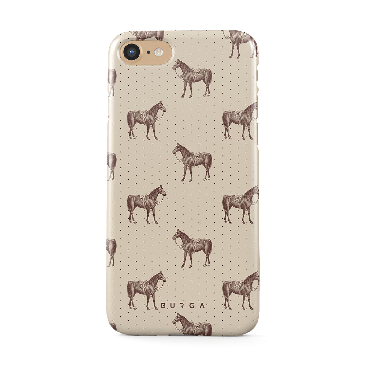 Life might feel like the Wild West sometimes, but your look can still be on point. With beautiful horses on a classic nude background, this iPhone 7 / iPhone 8 phone case design is the one for those who ride free and stylish.