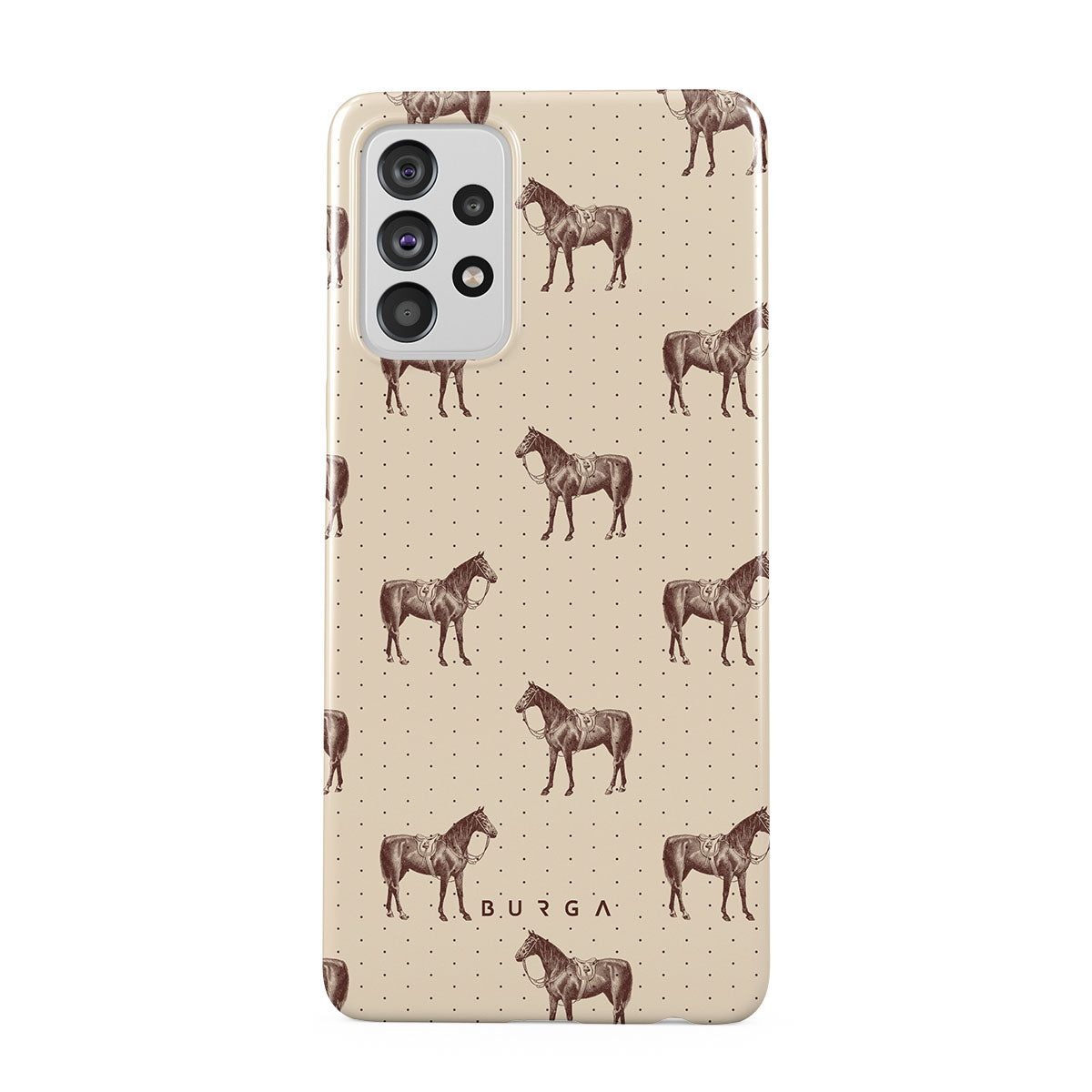 Life might feel like the Wild West sometimes, but your look can still be on point. With beautiful horses on a classic nude background, this Samsung Galaxy A72 4G / 5G phone case design is the one for those who ride free and stylish.