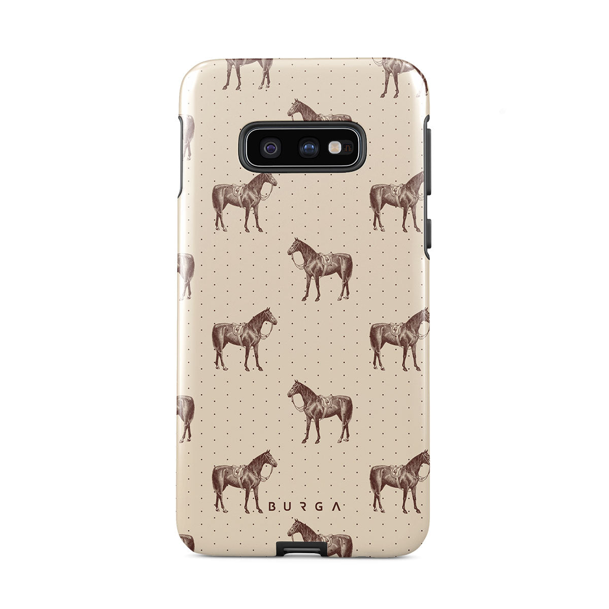 Life might feel like the Wild West sometimes, but your look can still be on point. With beautiful horses on a classic nude background, this Samsung Galaxy S10E phone case design is the one for those who ride free and stylish.
