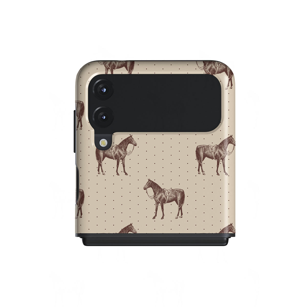 Life might feel like the Wild West sometimes, but your look can still be on point. With beautiful horses on a classic nude background, this Samsung Galaxy Z Flip 3 phone case design is the one for those who ride free and stylish.