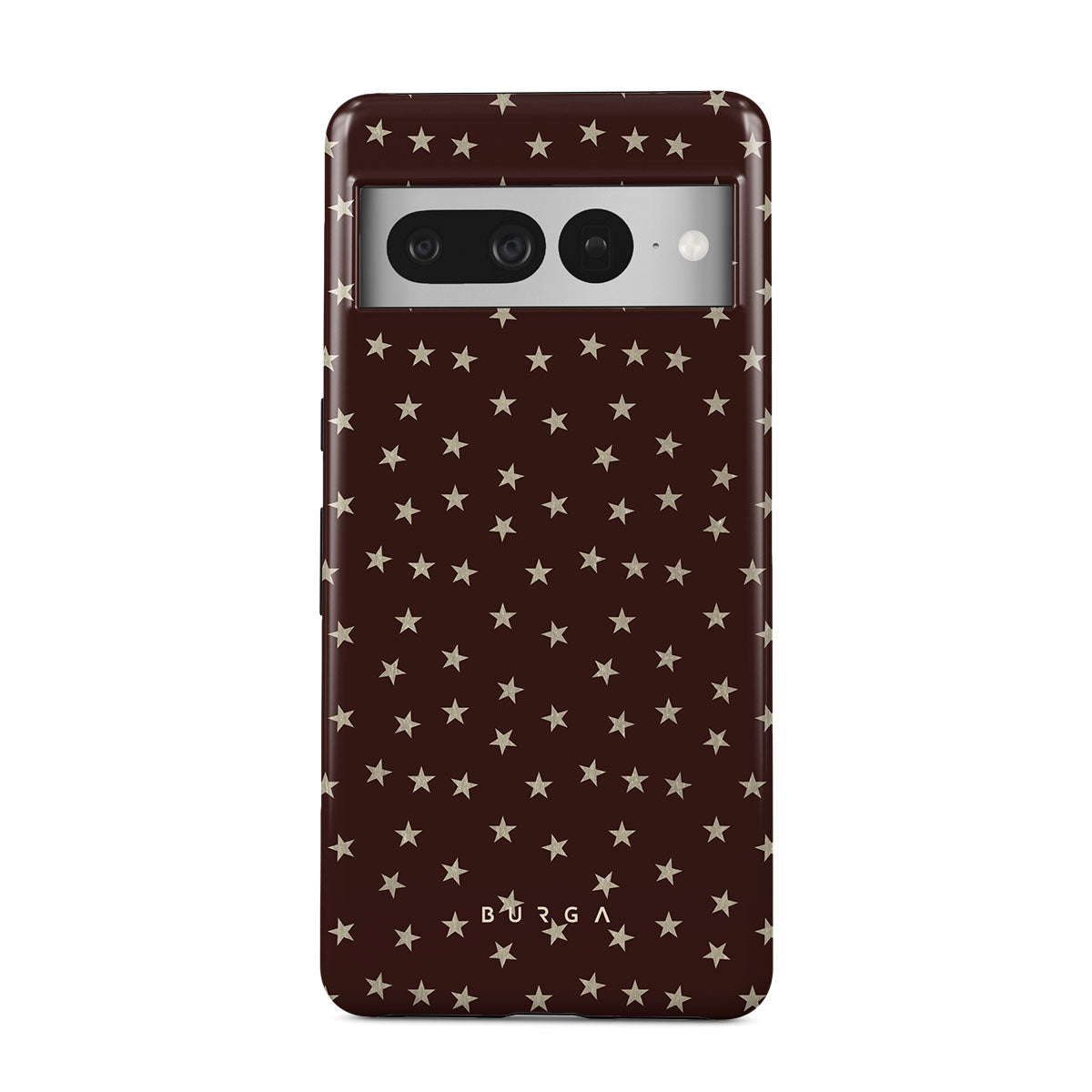 Our Wonderland Google Pixel 7 Pro phone case design glistens like a frosty winter night, where the magic of the season lights up the sky. Step into a snowfall of stars with every glance.