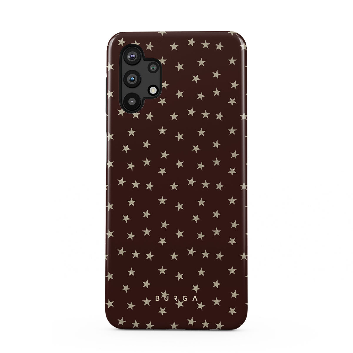 Our Wonderland Samsung Galaxy A32 5G phone case design glistens like a frosty winter night, where the magic of the season lights up the sky. Step into a snowfall of stars with every glance.