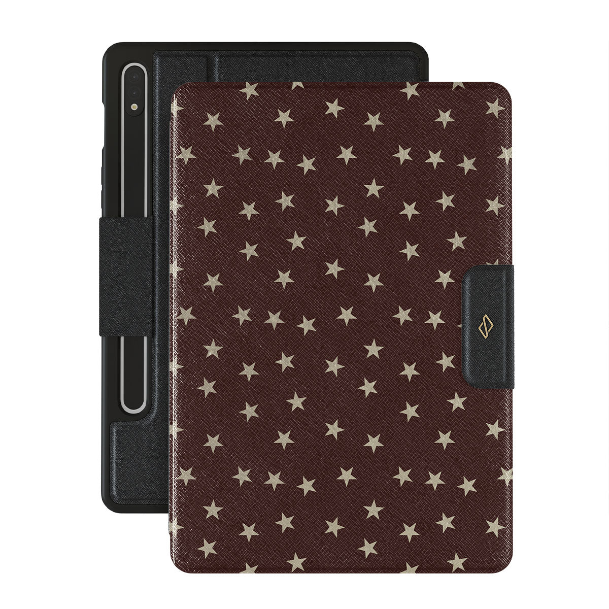 Our Wonderland Samsung Galaxy Tab S9 FE folio case design glistens like a frosty winter night, where the magic of the season lights up the sky. Step into a snowfall of stars with every glance.