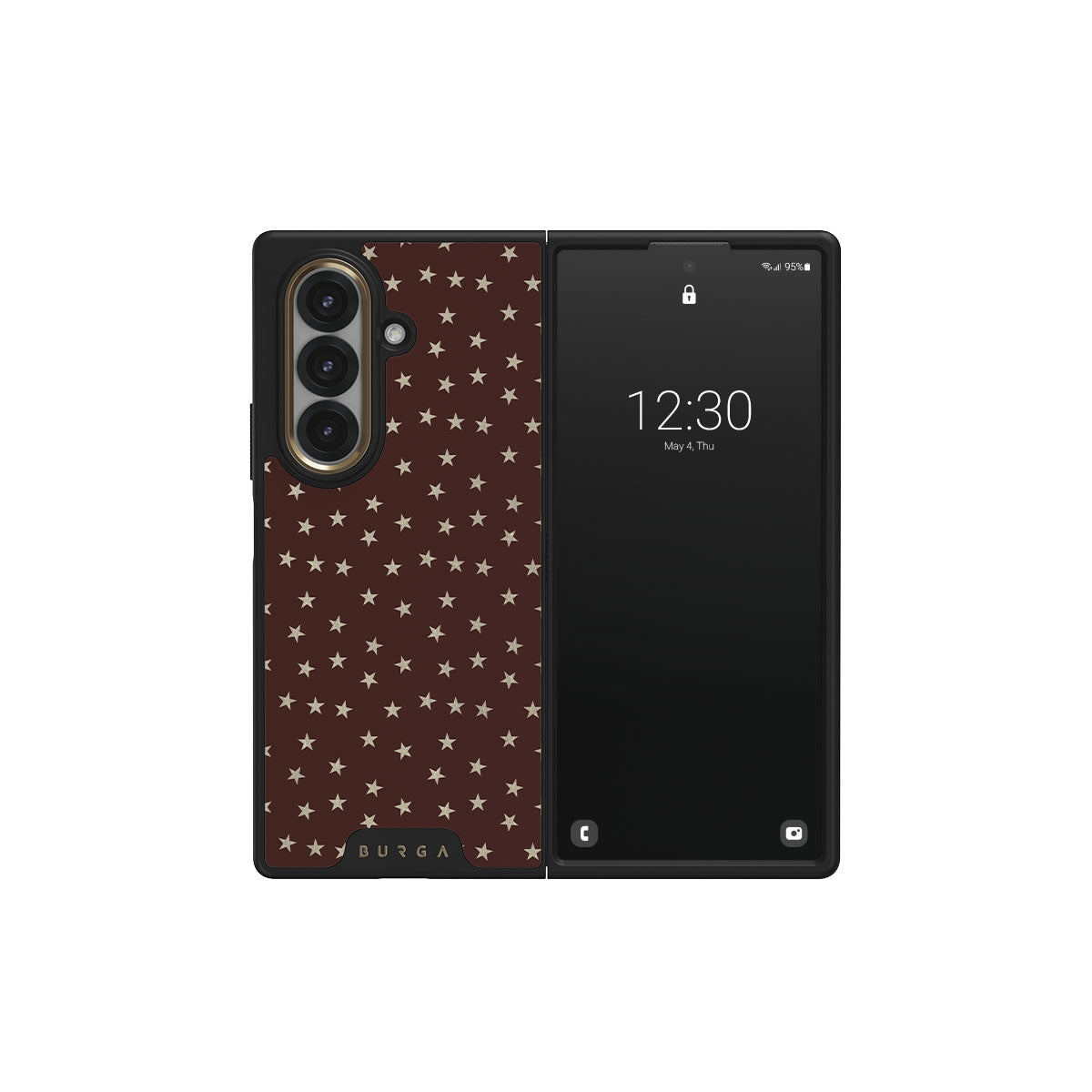 Our Wonderland Samsung Galaxy Z Fold 7 phone case design glistens like a frosty winter night, where the magic of the season lights up the sky. Step into a snowfall of stars with every glance.