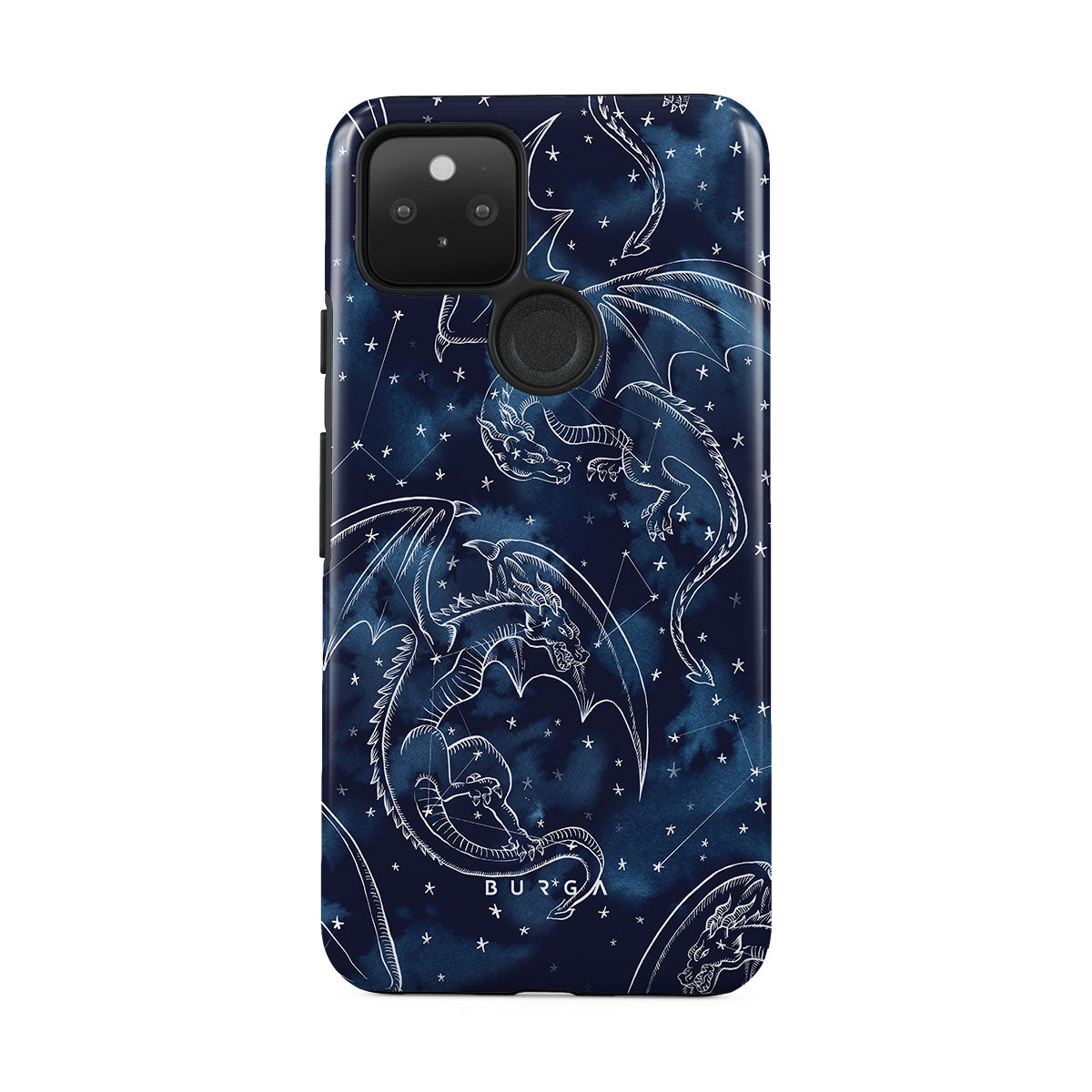Dragons carved in starlight = fierce guardians of destinies you cannot outrun. This Google Pixel 5 phone case design is no quiet omen.
