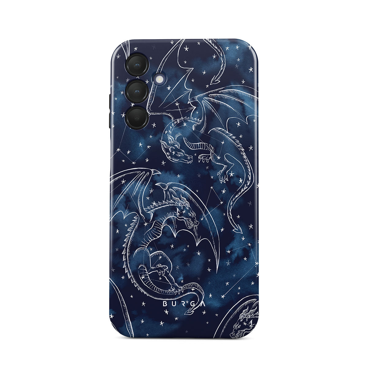Dragons carved in starlight = fierce guardians of destinies you cannot outrun. This Samsung Galaxy A15 4G / 5G phone case design is no quiet omen.