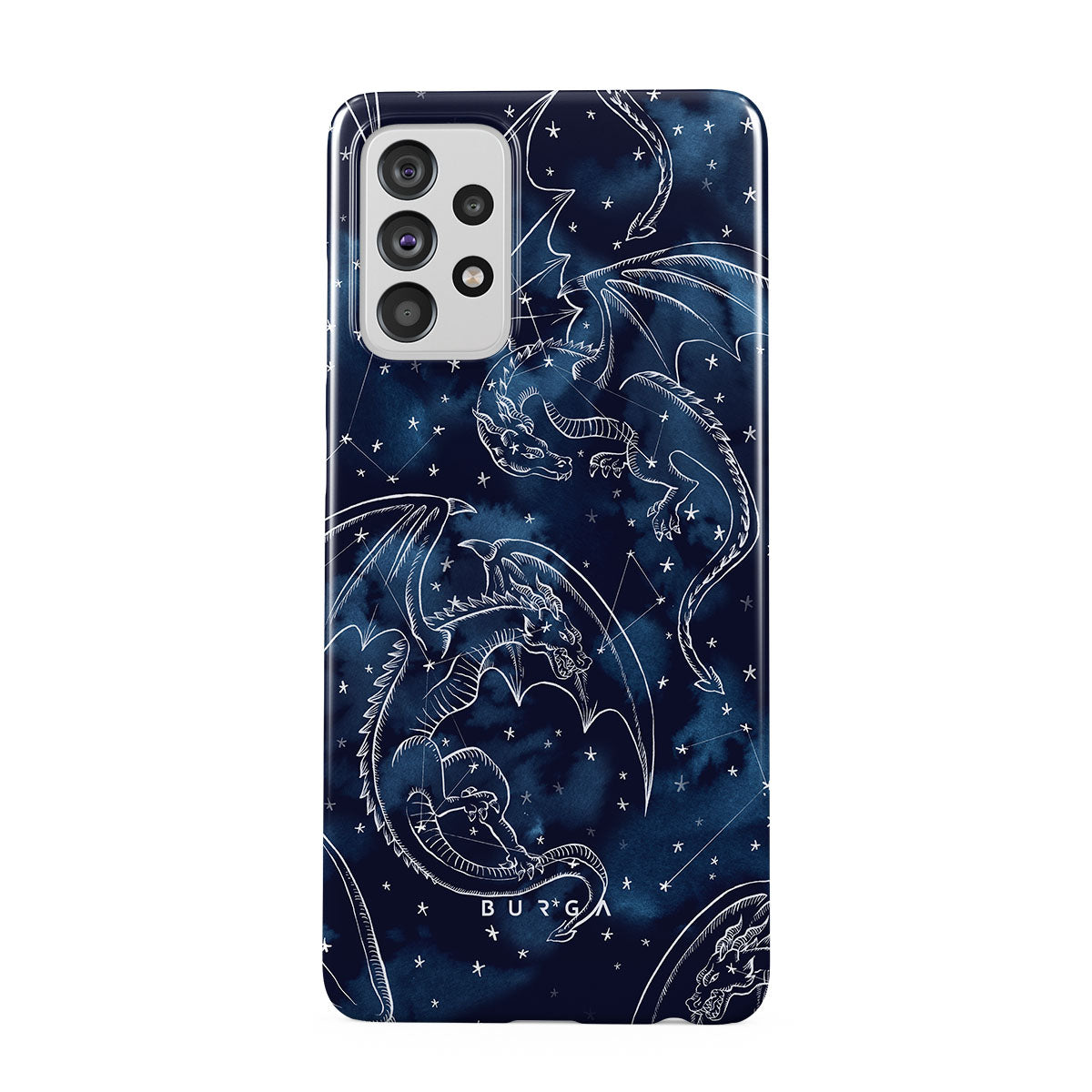 Dragons carved in starlight = fierce guardians of destinies you cannot outrun. This Samsung Galaxy A72 4G / 5G phone case design is no quiet omen.