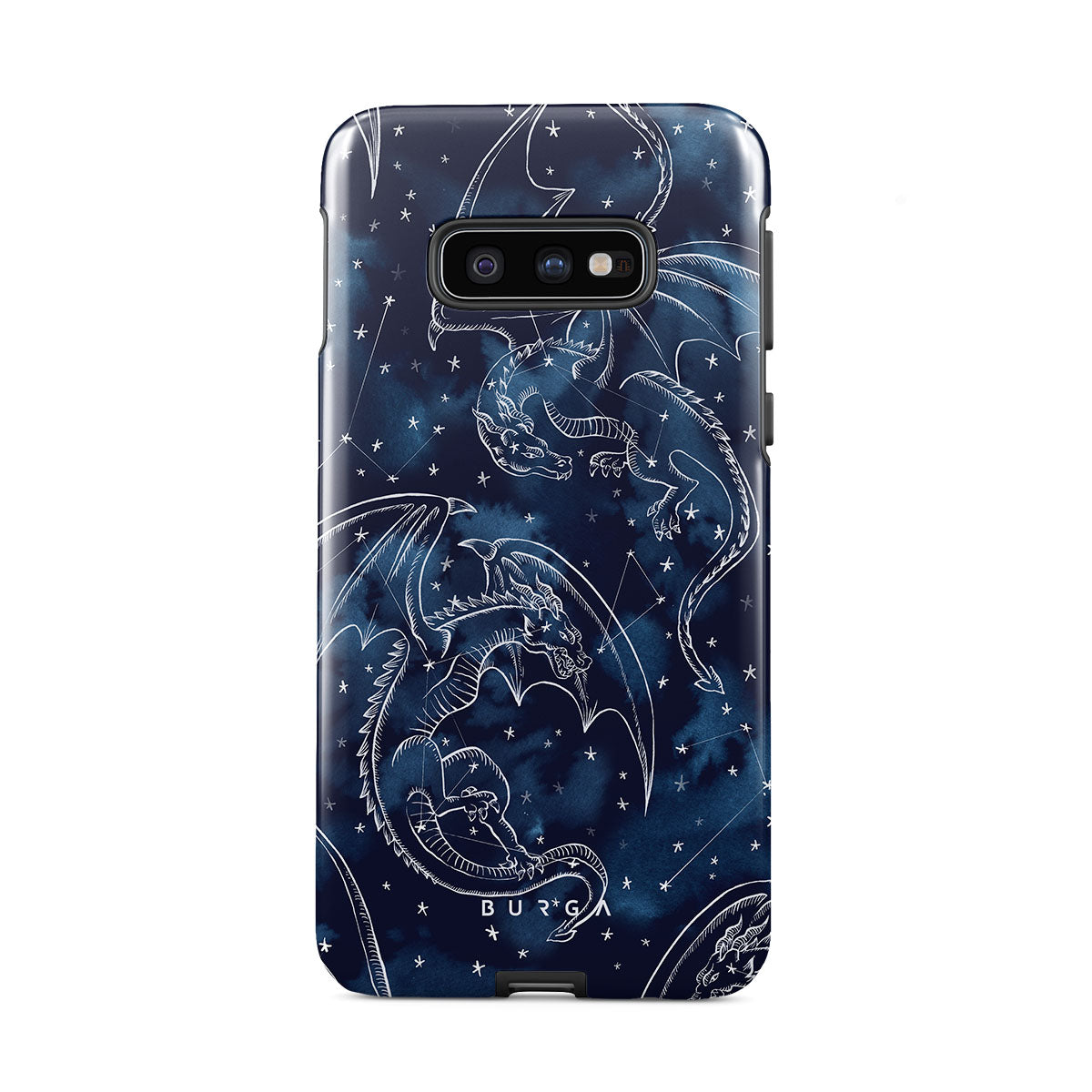 Dragons carved in starlight = fierce guardians of destinies you cannot outrun. This Samsung Galaxy S10E phone case design is no quiet omen.