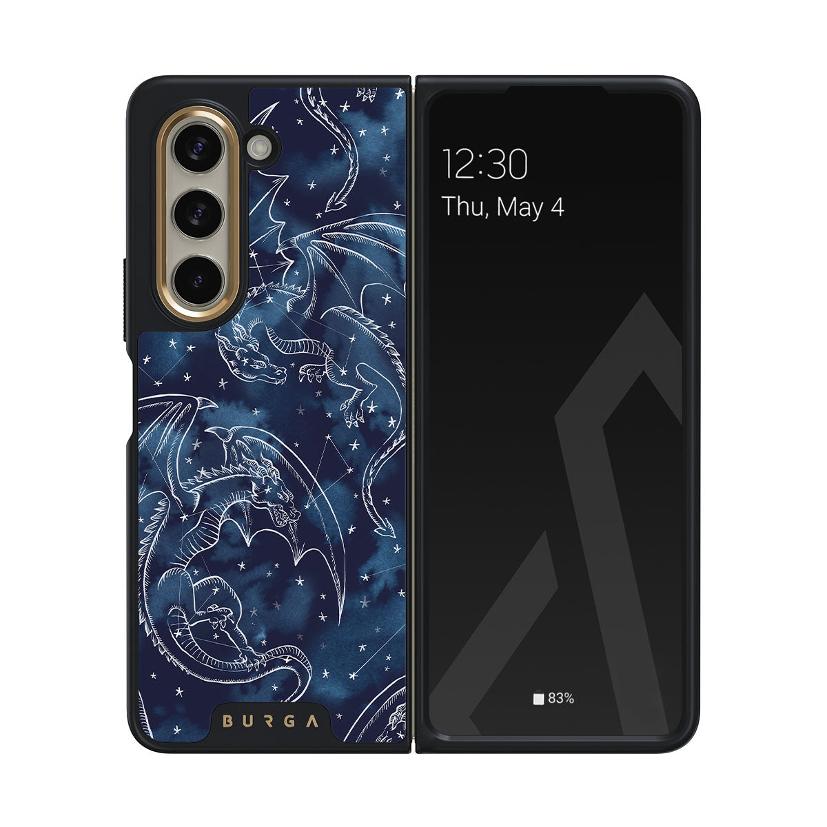 Dragons carved in starlight = fierce guardians of destinies you cannot outrun. This Samsung Galaxy Z Fold 5 phone case design is no quiet omen.