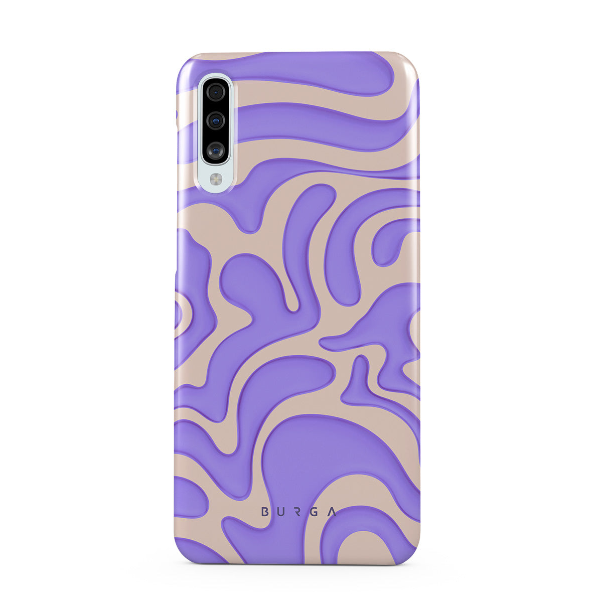 With a blend of retro and contemporary style, the Y2Kool Samsung Galaxy A50 phone case is the perfect accessory for anyone looking to make a statement. Drawing inspiration from the colorful and vibrant Y2K era, this case features pastel-toned metallic purple swirls that evoke memories of butterfly hair clips, platform shoes, and boy bands.