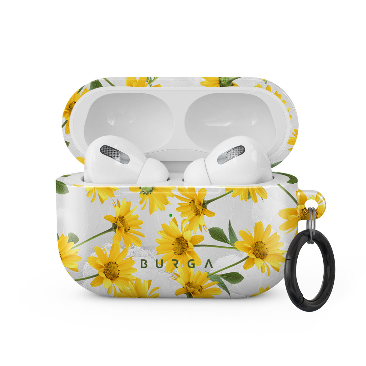 I went for the looks, but got a quality case! I love this case. At first I was worried about the case being in two pieces - top and bottom are not connected. However it fits so snuggly on the AirPods box that I believe that is not a worry for me. Also I like that it sticks out all shiny and yellow so I don't forget my AirPods on the plain or something. Love it. Bought a matching set with my work phone - how adorable are they?