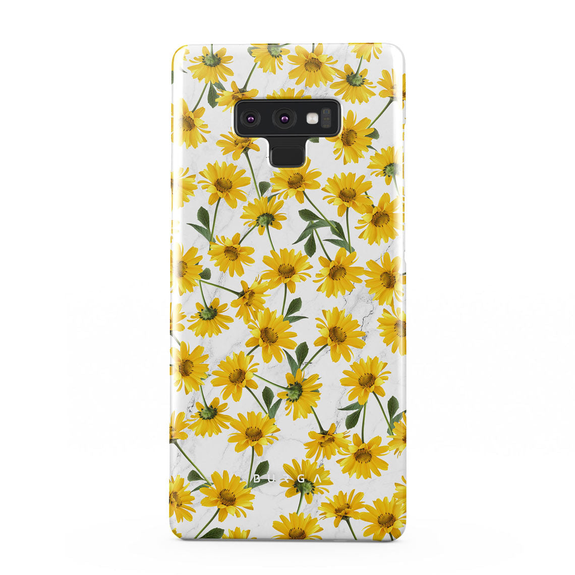 Little suns, little suns all around. Take the light of the summer whenever you go with the pretty pattern of the yellow flowers on your Samsung Galaxy Note 9 phone case to brighten your week, day, or a minute. A splash of color and heavy-duty protection is a perfect combo for your phone.