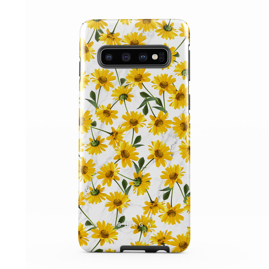 Little suns, little suns all around. Take the light of the summer whenever you go with the pretty pattern of the yellow flowers on your Samsung Galaxy S10 phone case to brighten your week, day, or a minute. A splash of color and heavy-duty protection is a perfect combo for your phone.