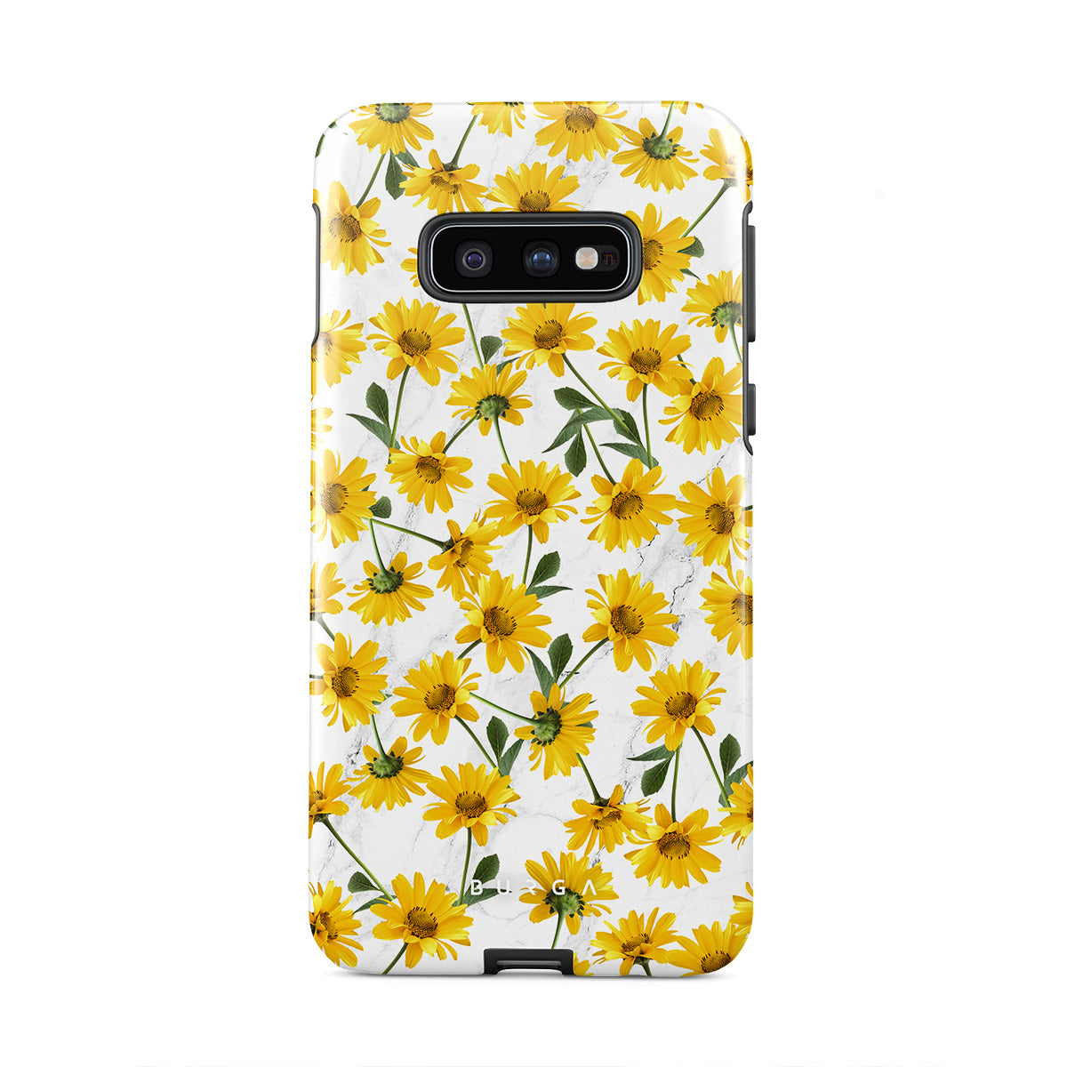Little suns, little suns all around. Take the light of the summer whenever you go with the pretty pattern of the yellow flowers on your Samsung Galaxy S10E phone case to brighten your week, day, or a minute. A splash of color and heavy-duty protection is a perfect combo for your phone.
