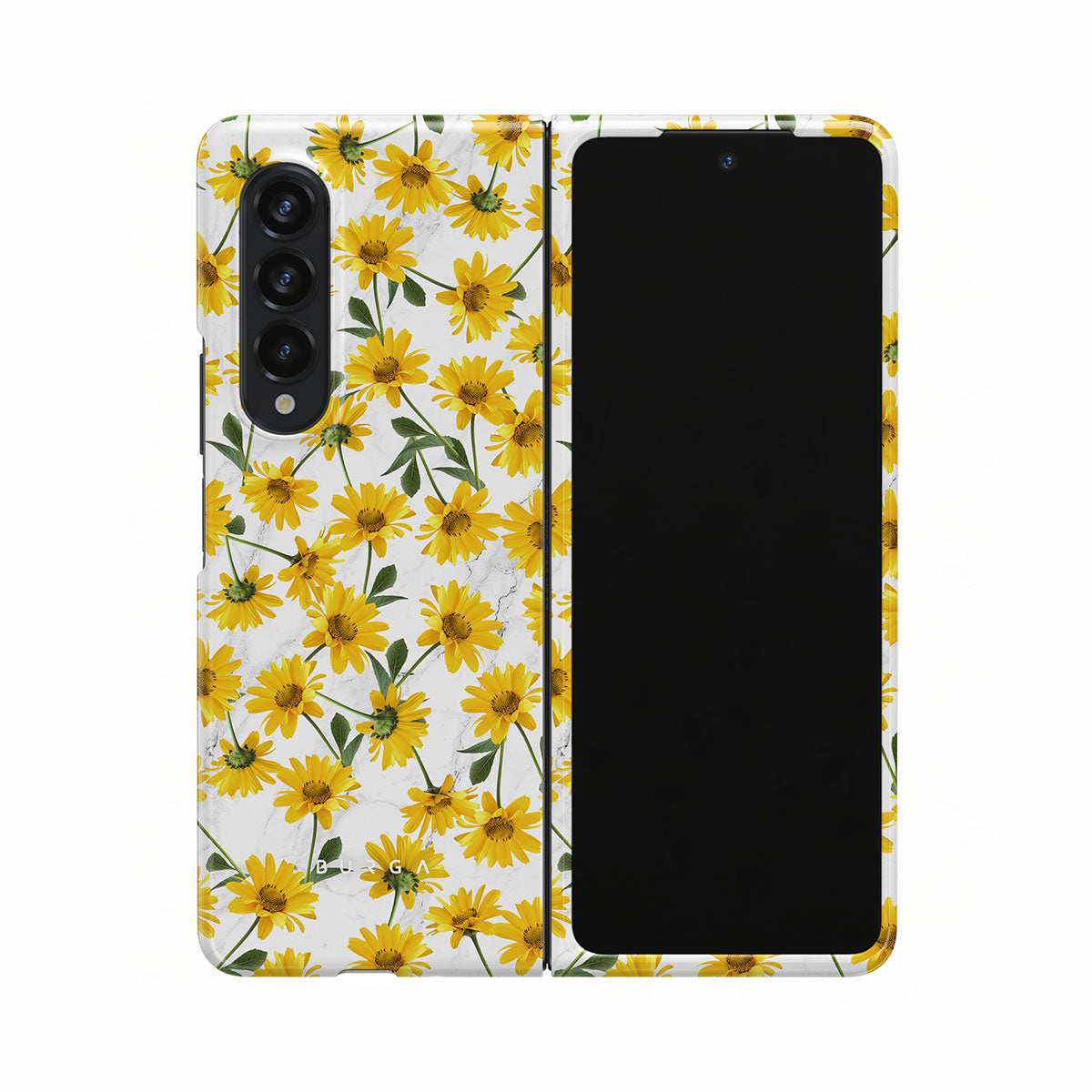 Little suns, little suns all around. Take the light of the summer whenever you go with the pretty pattern of the yellow flowers on your Samsung Galaxy Z Fold 3 phone case to brighten your week, day, or a minute. A splash of color and heavy-duty protection is a perfect combo for your phone.