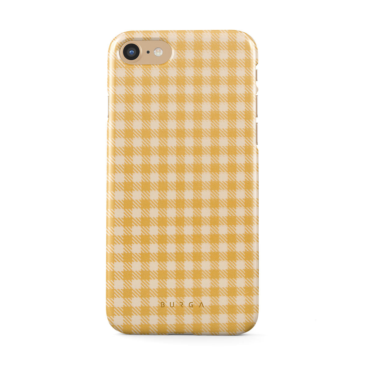 Always fashionable and always inviting, the Preppy Vichy fabric returns in our Tuscan Sun iPhone 7 / iPhone 8 phone case. The brightness and warmth of this enchanting yellow plaid design indeed remind us of the always generous Tuscan Sun. You can add a piece of this playful squares pattern with you while keeping your phone out of harm's way!