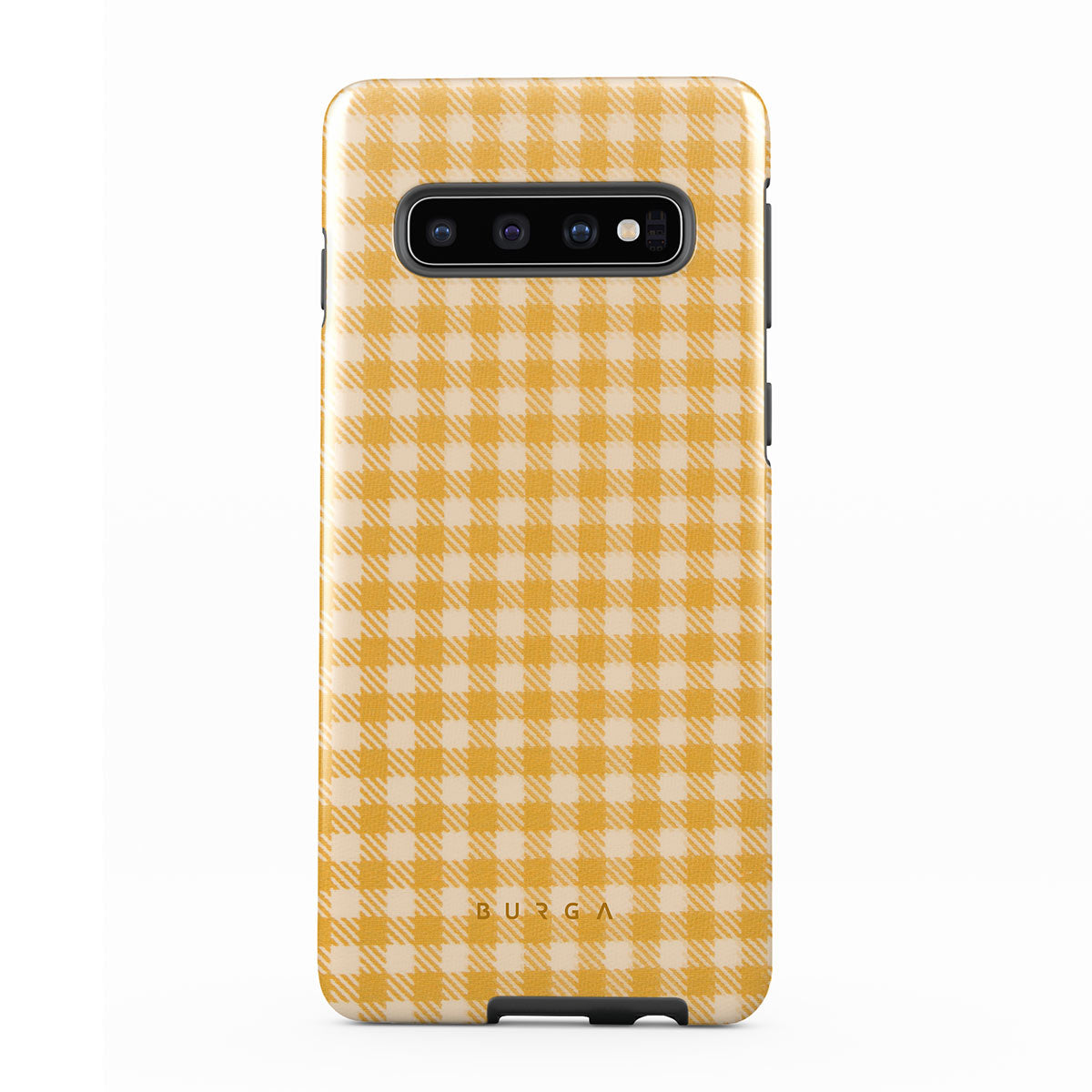 Always fashionable and always inviting, the Preppy Vichy fabric returns in our Tuscan Sun Samsung Galaxy S10 4G phone case. The brightness and warmth of this enchanting yellow plaid design indeed remind us of the always generous Tuscan Sun. You can add a piece of this playful squares pattern with you while keeping your phone out of harm's way!