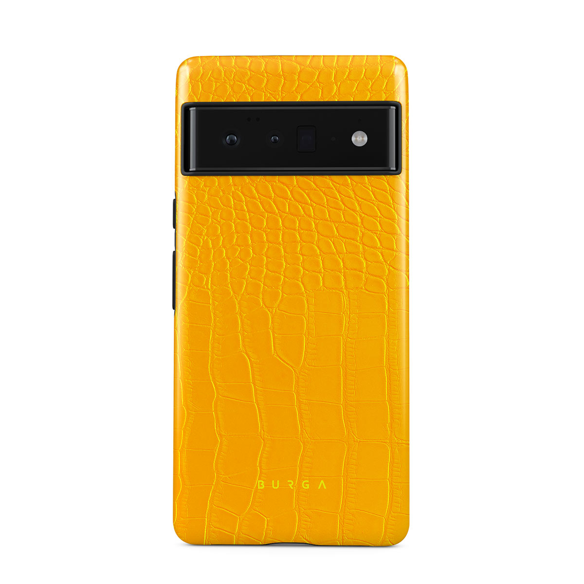 Our Canary Yellow Google Pixel 6 Pro phone case features a classic snake design reimagined and showcased in bright yellow. The new take on the dangerous animal print will add confidence and a touch of color to your style while transforming your protective phone case into a fashion accessory.