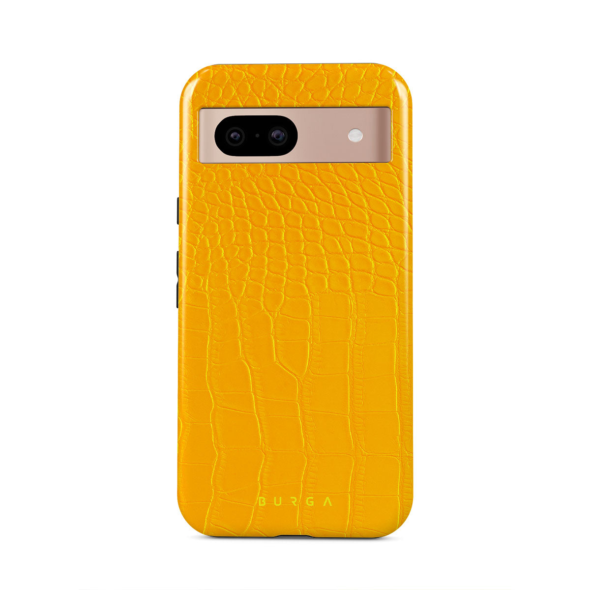 Our Canary Yellow Google Pixel 8a phone case features a classic snake design reimagined and showcased in bright yellow. The new take on the dangerous animal print will add confidence and a touch of color to your style while transforming your protective phone case into a fashion accessory.