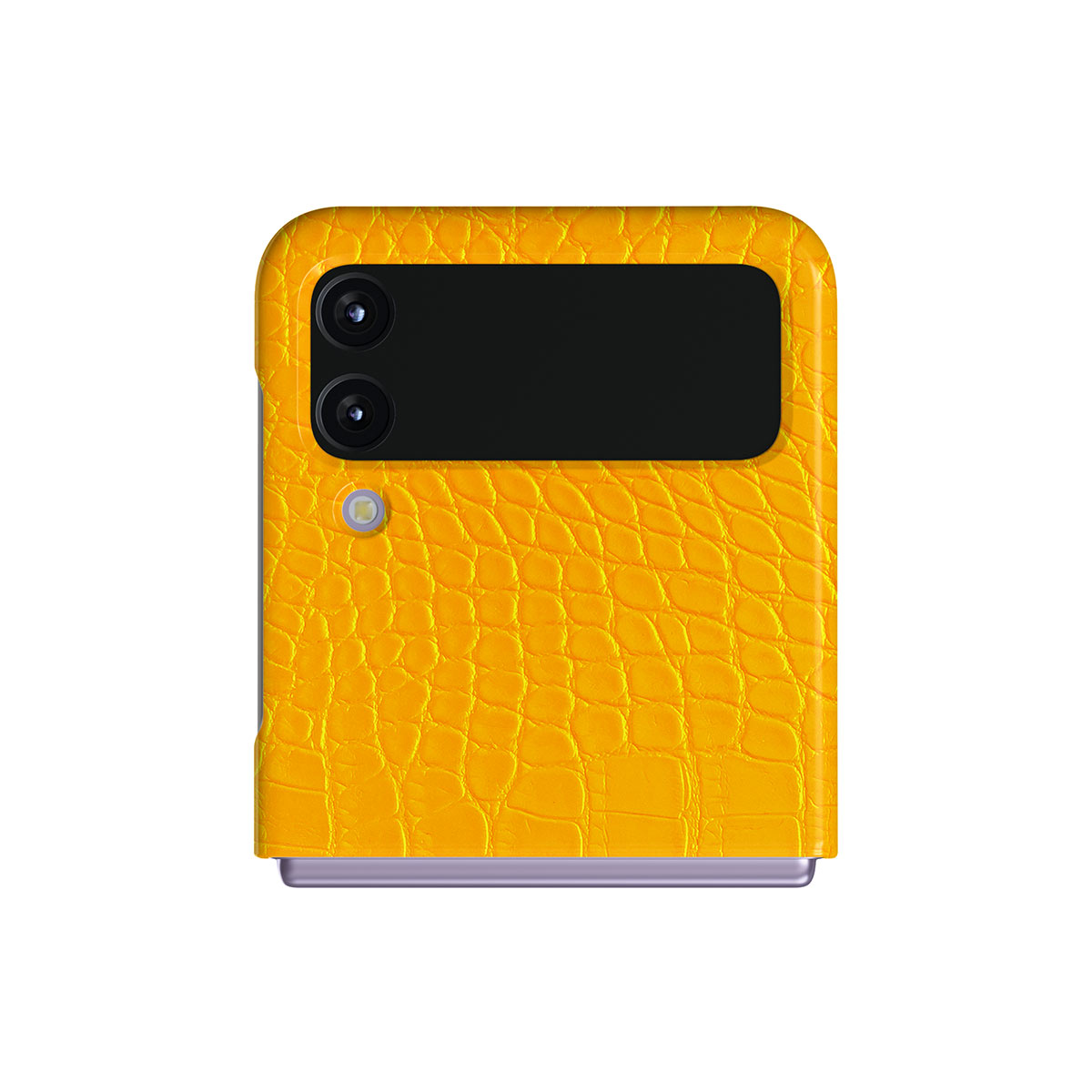 Our Canary Yellow Samsung Galaxy Z Flip 4 phone case features a classic snake design reimagined and showcased in bright yellow. The new take on the dangerous animal print will add confidence and a touch of color to your style while transforming your protective phone case into a fashion accessory.