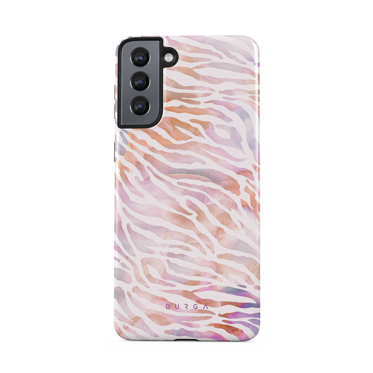 Sultry July Samsung Galaxy S21 phone case combines an exotic zebra pattern with the softest shades of pink. The Zebra pattern adds a touch of energy, while pinks will emphasize a softer side. This trendy phone case will keep your cellphone safe and sound from any falls or scratches.