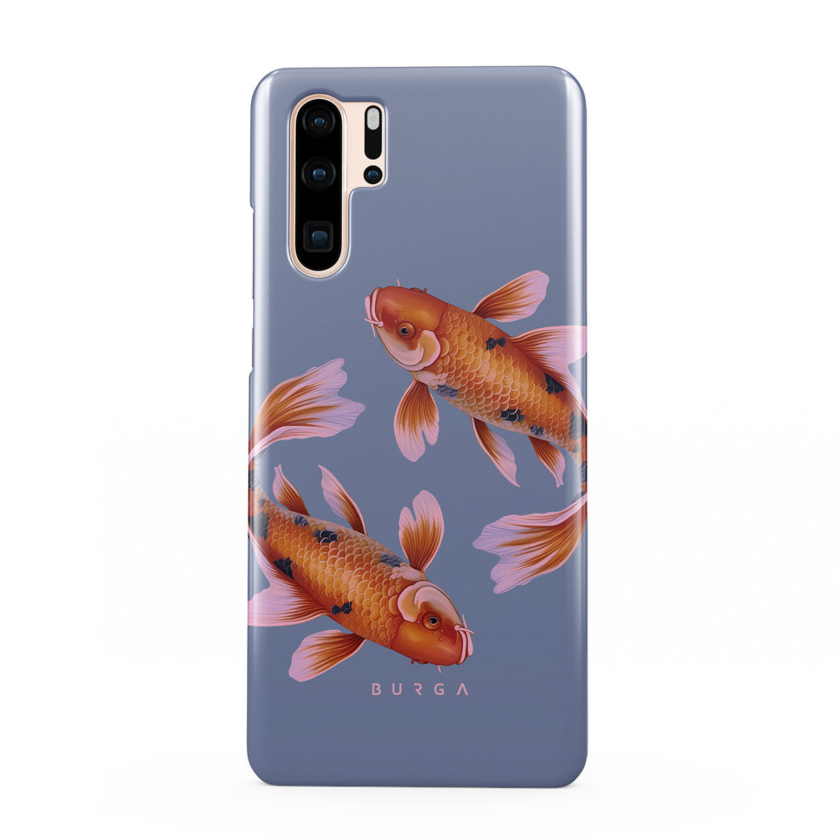 In the embrace of serene blue, the golden koi swirl, a symbol of life's fluid nature and the grace of going with the flow. Their dance is a serene meditation on the currents of destiny and the elegance of adapting with purpose. Discover our Zen Huawei P30 Pro phone case design.