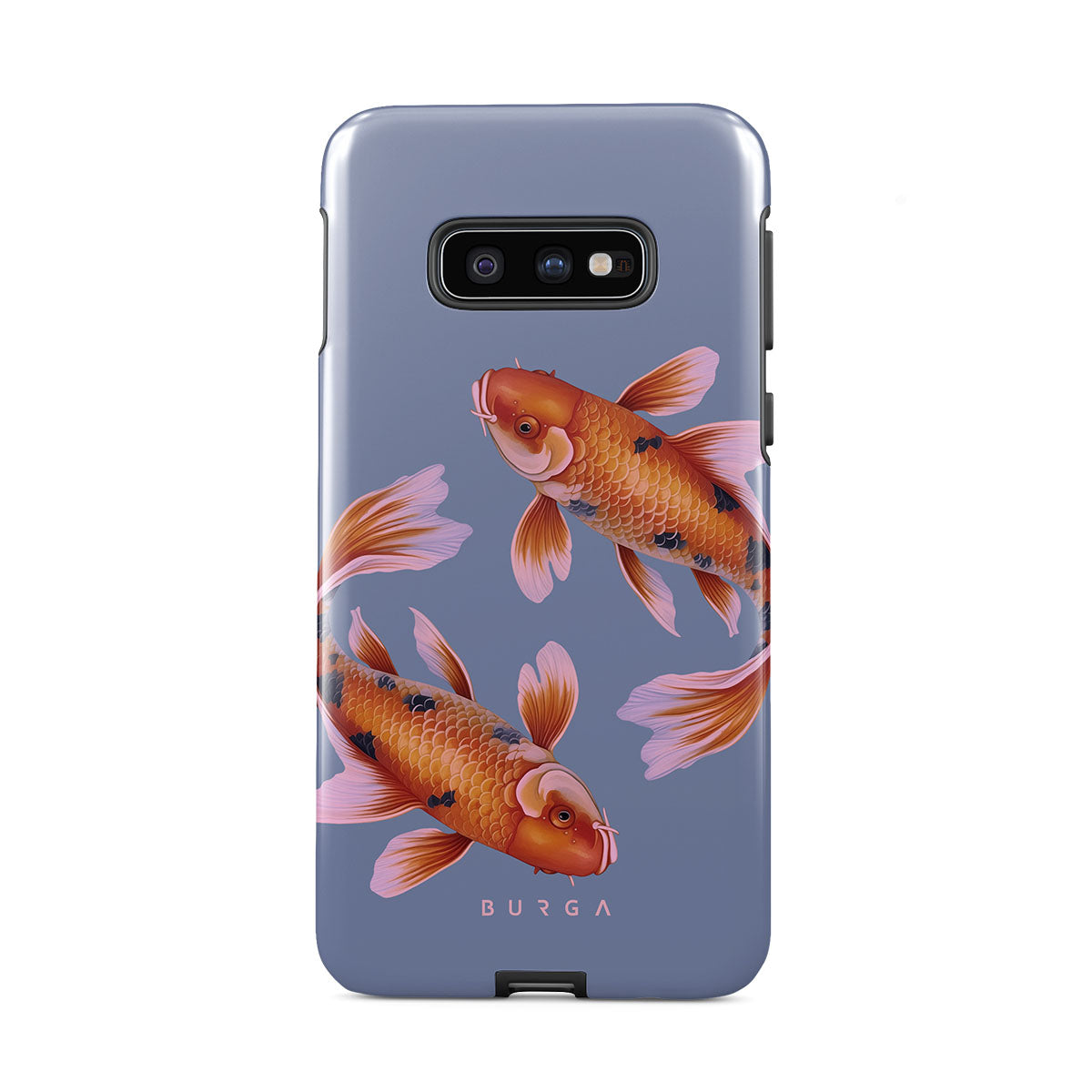 In the embrace of serene blue, the golden koi swirl, a symbol of life's fluid nature and the grace of going with the flow. Their dance is a serene meditation on the currents of destiny and the elegance of adapting with purpose. Discover our Zen Samsung Galaxy S10E phone case design.