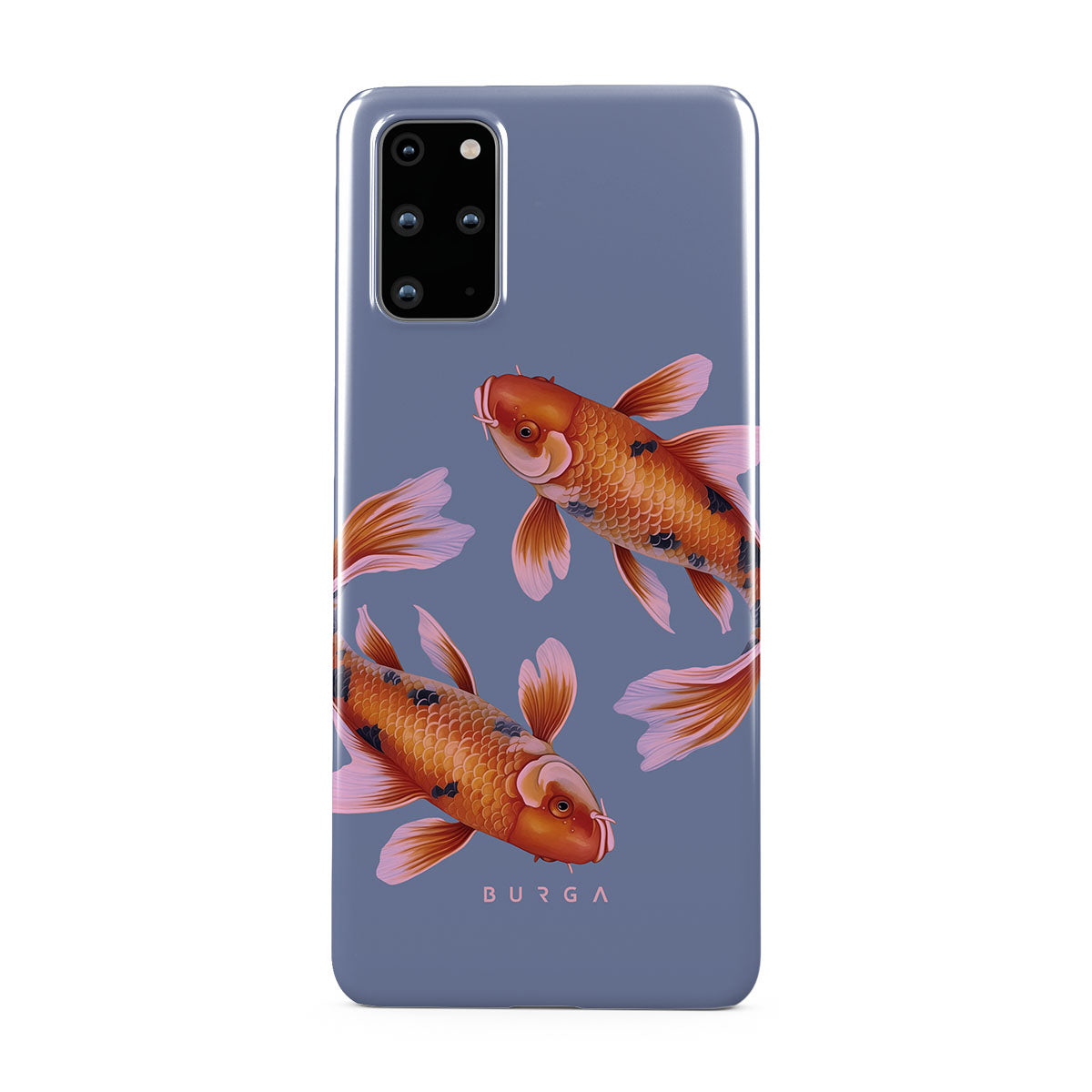 In the embrace of serene blue, the golden koi swirl, a symbol of life's fluid nature and the grace of going with the flow. Their dance is a serene meditation on the currents of destiny and the elegance of adapting with purpose. Discover our Zen Samsung Galaxy S20 Plus 4G / 5G phone case design.