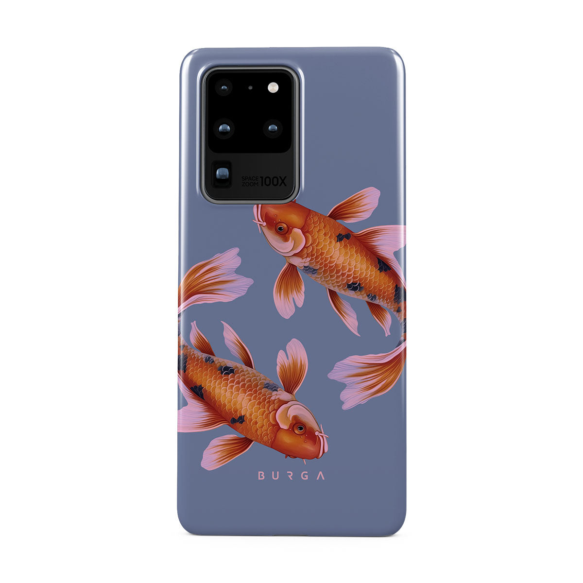 In the embrace of serene blue, the golden koi swirl, a symbol of life's fluid nature and the grace of going with the flow. Their dance is a serene meditation on the currents of destiny and the elegance of adapting with purpose. Discover our Zen Samsung Galaxy S20 Ultra 4G / 5G phone case design.