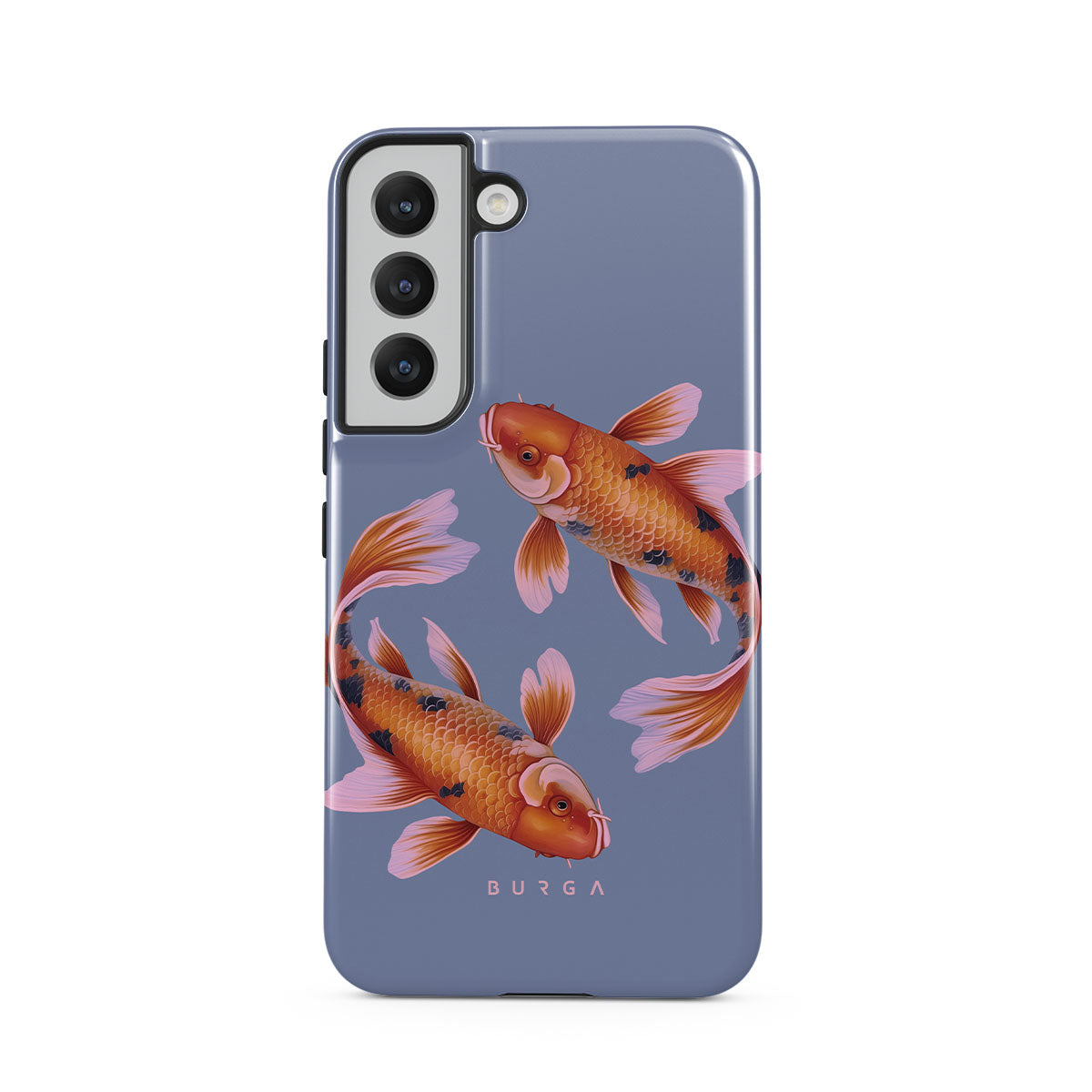 In the embrace of serene blue, the golden koi swirl, a symbol of life's fluid nature and the grace of going with the flow. Their dance is a serene meditation on the currents of destiny and the elegance of adapting with purpose. Discover our Zen Samsung Galaxy S22 Plus phone case design.